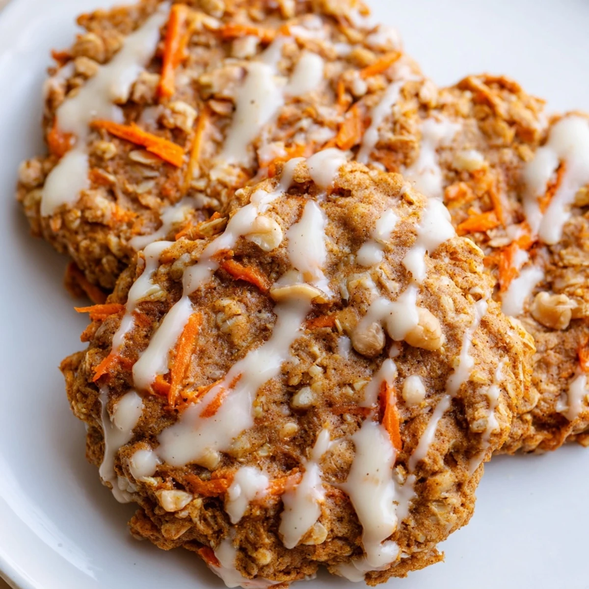 The glaze is optional but adds wonderful tangy sweetness that mimics traditional carrot cake frosting. The cookies taste delicious on their own, but the cream cheese drizzle makes them extra special.