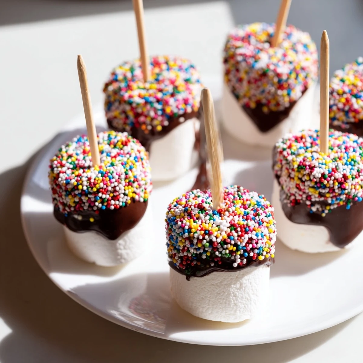 Set up your sprinkles in small shallow bowls rather than one big pile. This lets you control exactly how much lands on each marshmallow and prevents cross-contamination between sprinkle colors. Trust me on this after my niece turned all the sprinkles into an unappealing brownish gray mixture.