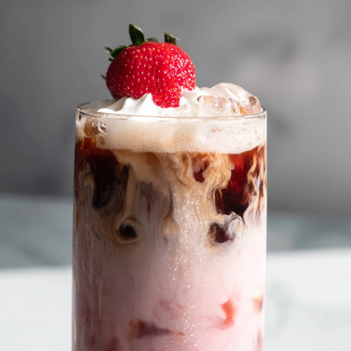 - Pour the strawberry cream mixture evenly over the ice, then slowly pour the cold coffee over the back of a spoon to create that gorgeous marbled effect. Top with whipped cream and fresh strawberries if you're feeling fancy.